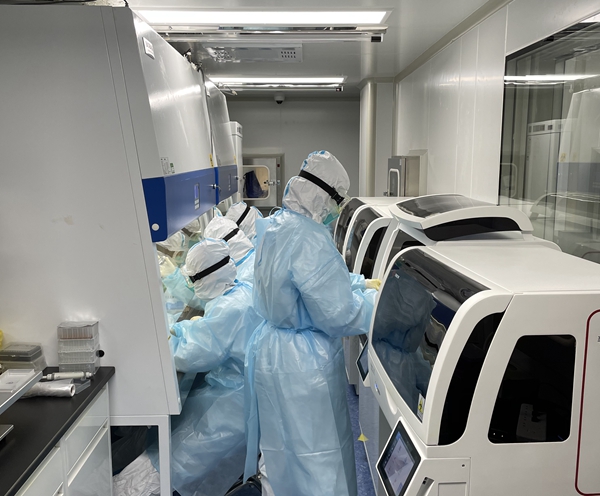 实验室是三班倒,24小时一直转的运作模式,数十台仪器一刻一直地事情着,30万人份样本,我们天天要举行近5万人份核酸检测。